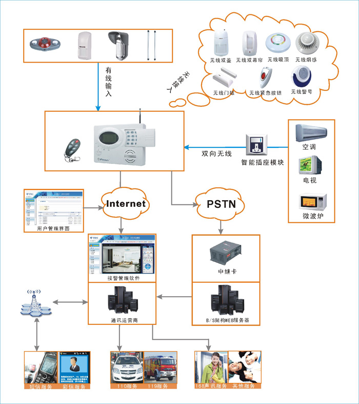 Home Security System is varied for different homes according to the family's economy ability, knowledge and preference. The security system consists of control panel, wiring and security sensors. From information communication part, the home security system consists of audio information, data information, video information and control information. From the security system's function, it consists of security protection function (intercom, intruder detection, gas leakage detection, smoke or heat alarm, glass break detection, vibration sensor, and emergency call etc. ) and house appliance automatic control function (lighting, air conditioner, TV set and other house appliance controlling). Home Security System can be self installed and monitored or via security service center. For self monitored home security system, only security control panel and detectors should be installed at home. For security service monitored home security system, the security control panel should be wired(bus type) to security service center. The home security protection areas include perimeter security and indoor security. Perimeter security protection areas include outdoor areas protection and door, windows intruder detection systems. Indoor protection areas include PIR installed in rooms, staircase, aisle etc. When people is at home, perimeter security detectors should be armed and indoor security detectors can be disarmed. When people is away home, both perimeter security detectors and indoor detectors should be armed. Alarm zone and emergency level can be set for each detector and sensitivity can be set for each detector. So, home security system is varied for different house and family protection requirement.